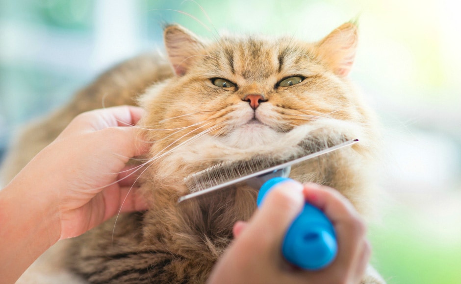 Czesanie kota » to podstawa pielęgnacji. Zabieg ten u mruczków krótkowłosych należy wykonywać przynajmniej raz w tygodniu. Koty obdarzone długą sierścią potrzebują zwykle codziennego wyczesywania. Podczas całej procedury zwierzak musi leżeć na antypoślizgowej powierzchni, w którą może bez problemu wbić swoje pazurki. Zanim przystąpimy do zabiegu powinniśmy wstępnie skontrolować skórę i futro zwierzaka. W razie potrzeby należy zacząć do rozplątania kołtunów lub usunięcia zanieczyszczeń przy pomocy grzebienia. Przed szczotkowaniem dobrze też nanieść na sierść pupila wybrany preparat pielęgnacyjny. Szczotkowanie rozpoczynamy od głowy, a kończymy na ogonie. Zwierzaka czeszemy zgodnie z kierunkiem wzrostu włosów. Z futra powinniśmy najpierw usunąć martwe włosy, potem możemy wygładzić sierść, a na koniec nadać jej wybranym fragmentom nieco puszystości.