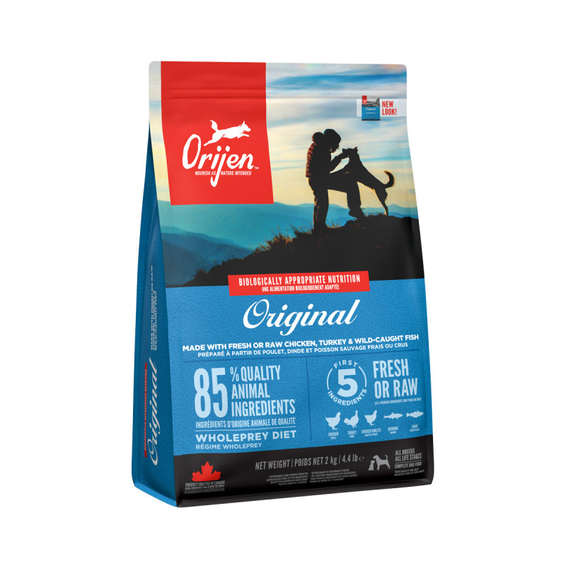 Pokarm ORIJEN Original zawiera mięso kurczaka i indyka pochodzących z wolnego wybiegu, całe jaja oraz ryby poławiane w naturalnym środowisku. Wszystkie składniki pochodzą z Kanady i są dostarczane ŚWIEŻE. Ryby nie są sztucznie konserwowane, nigdy nie są mrożone, są pełne białka i tłuszczy, które w pełni odżywiają Twojego psa. Karma ORIJEN Original jest całkowicie bezzbożowa, cechuje ją też niska zawartość węglowodanów.