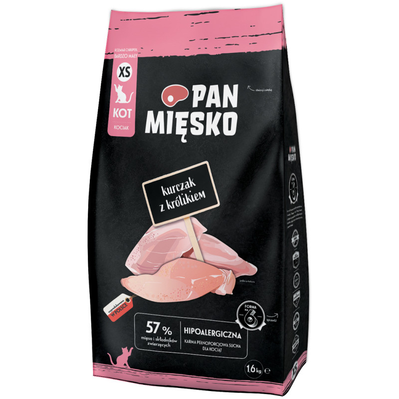 Charakterystyka suchej karmy Pan Mięsko z kurczakiem i królikiem dla kociąt