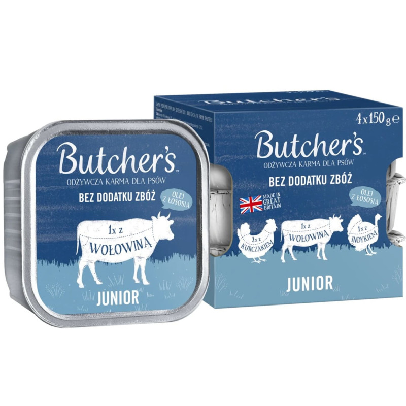 Butcher’s Original Junior to bezzbożowe karmy opracowane z myślą o potrzebach żywieniowych szczeniąt. Produkty z tej linii zostały stworzone tak by zapewnić szczeniakom najlepszy start w dorosłe życie. Wszystkie produkty powstają na bazie naturalnych składników i są zamknięte w opakowaniach przyjaznych środowisku