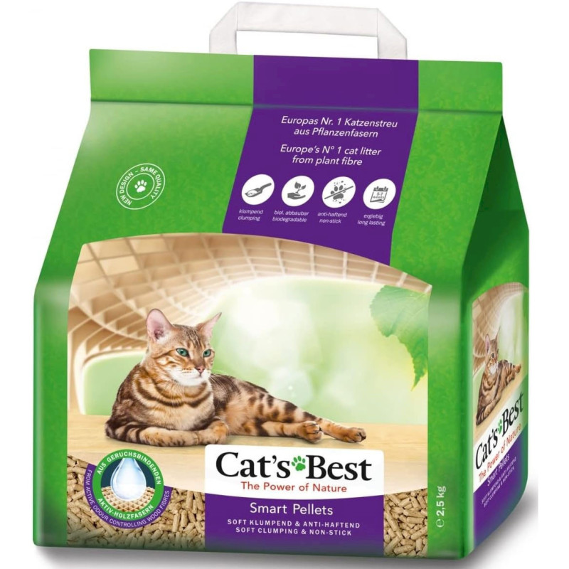 Żwirek dla kotów Cat's Best Smart Pellets to zbrylający się żwirek dla kotów, wykonany w 100% z naturalnych włókien roślinnych - Idealny dla kotów długowłosych!